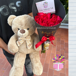 Un hermoso ramo de flores junto al oso hará que el regalo sea aún más especial, Perfecto para Cumpleaños, meses o conquista.